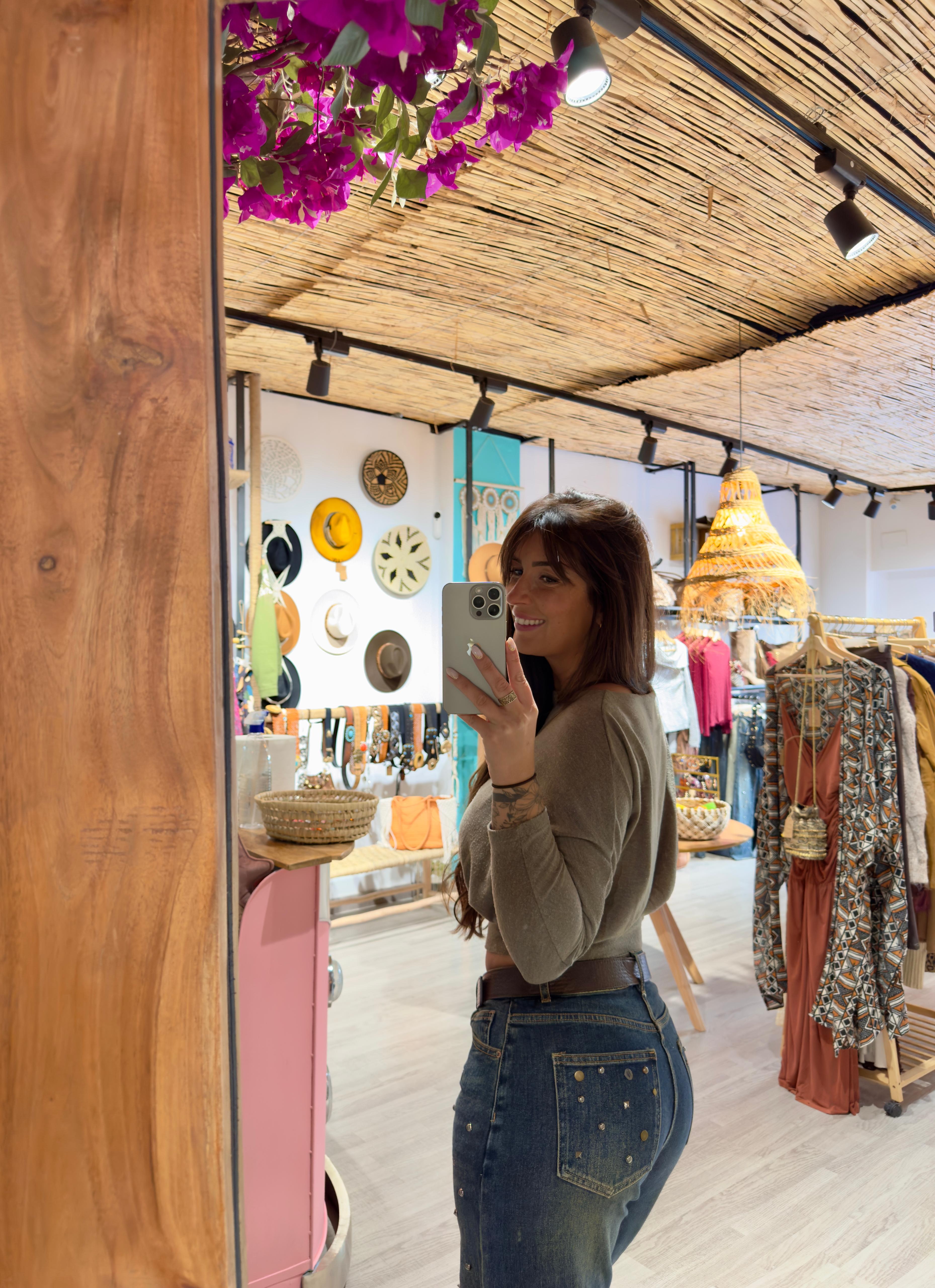 La modelo tiene la talla 38/40, mide 174 cm y lleva la talla M